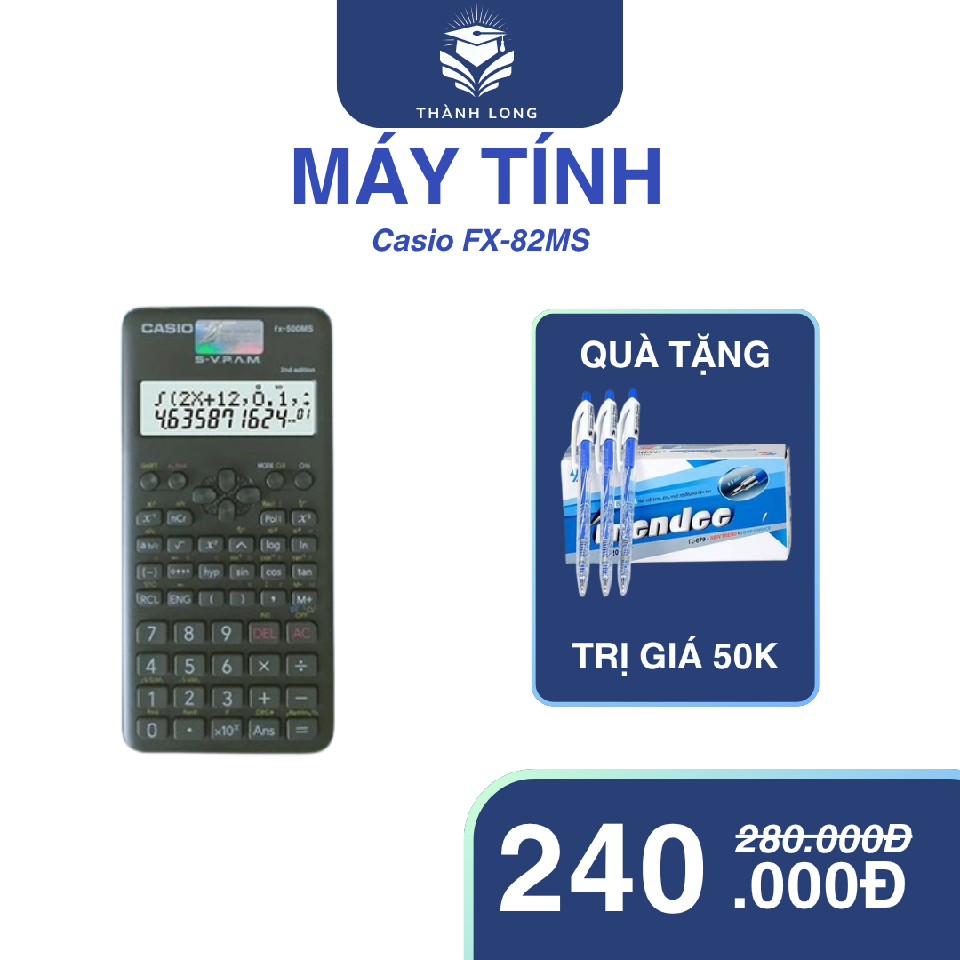Casio FX-82MS là một lựa chọn đơn giản và hiệu quả. Sản phẩm này có thiết kế nhỏ gọn, bền bỉ và dễ sử dụng. Với 240 chức năng, máy đáp ứng tốt nhu cầu tính toán cơ bản của học sinh. Màn hình 2 dòng hiển thị kết quả và biểu thức, giúp bạn dễ dàng kiểm tra. Máy sử dụng pin AAA.
